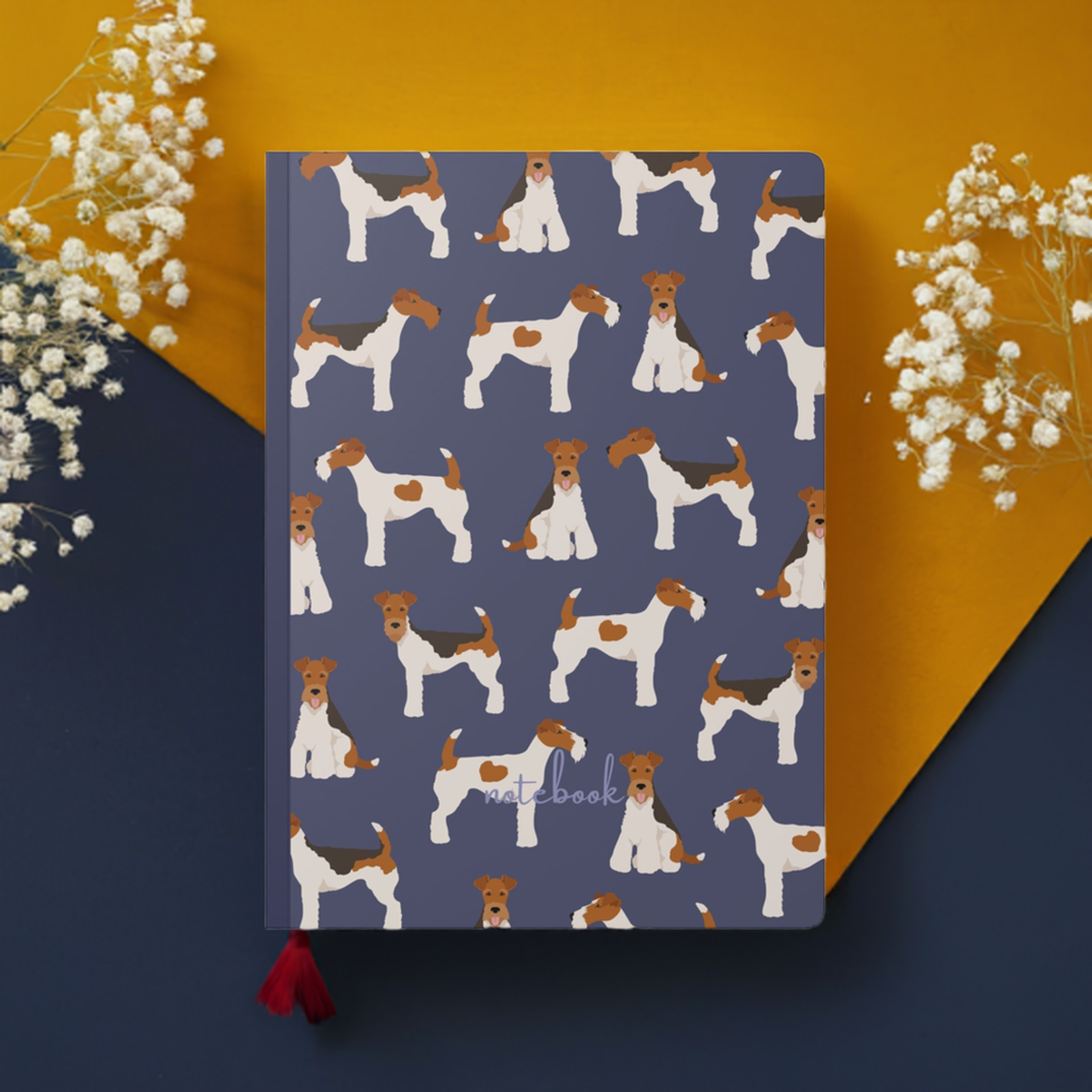 Adorable Wire Fox Terrier On Navy-Themed Softcover Journal - Perfect for Pet Lovers