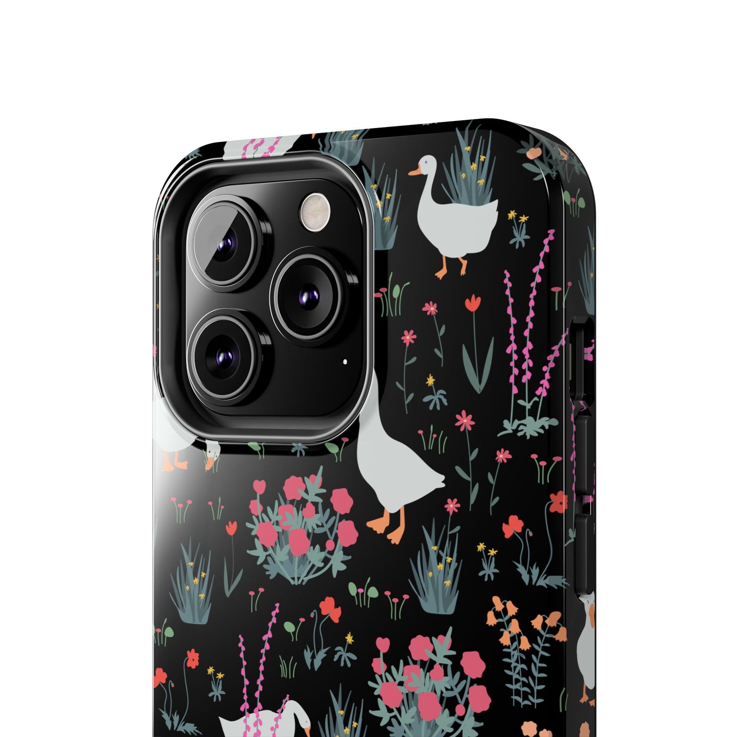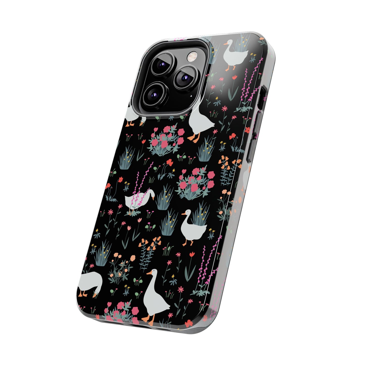 Whimsical Floral Duck Tough Phone Case - Stylish Protection for Your Device